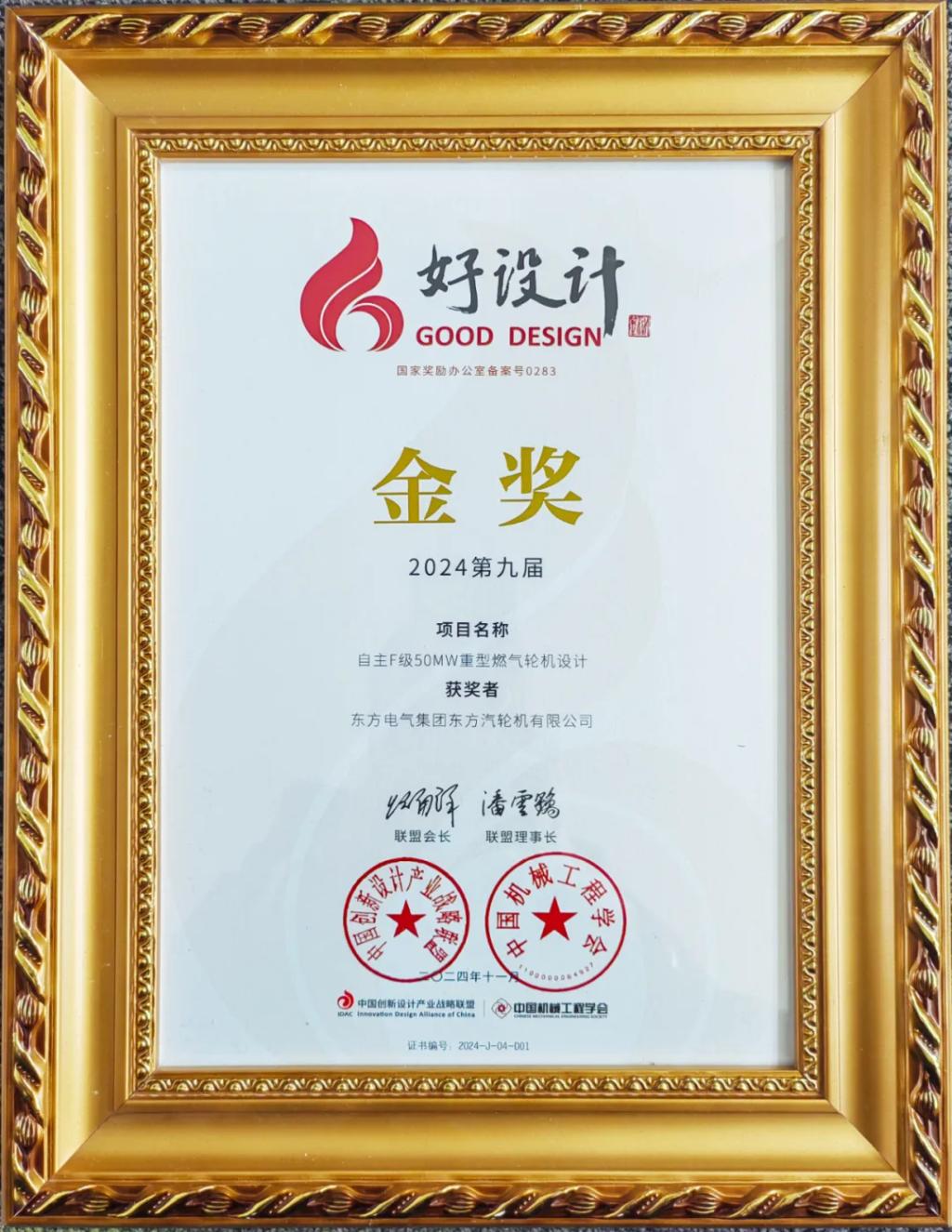 11月18日至19日,2024中国创新设计活动周暨第九届好设计颁奖大会在浙江省召开。在中国创新设计产业战略联盟副会长兼理事长、中国工程院院士潘云鹤等10位院士的共同见证下,人生就是博官网电气集团所属人生就是博官网汽轮机申报的《自主F级50MW重型燃气轮机设计》获得2024好设计金奖。好设计奖是唯一的国家级设计创新专项奖,代表了我国设计创新发展趋势。