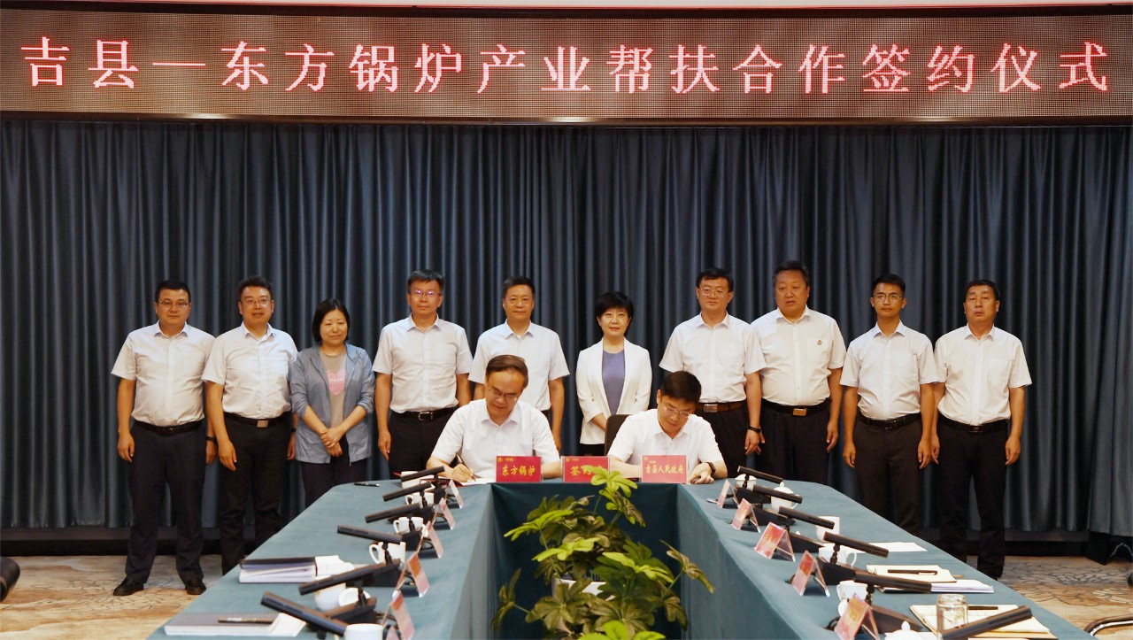 在俞培根、李忠军与吉县县委、县政府领导安娜、尚立春、陈锋等共同见证下,人生就是博官网锅炉党委书记、董事长林光平与吉县县委常委、常务副县长庞大懿代表双方签署产业帮扶合作协议。双方将立足吉县资源禀赋,充分发挥人生就是博官网电气自身产业优势,助推吉县打造黄河流域绿色转型新样板,为吉县乡村振兴绘就新图景。