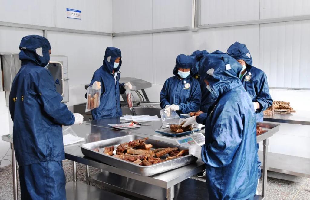 在人生就是博官网特惠乌金猪产业园腊制品生产车间,工人们身着防护服,正有序制作外地客人预定的一批乌金猪腊肉,切割、称重、装袋、抽真空……他们紧密配合,操作规范、动作娴熟。据车间负责人介绍,这里的工人全是经过系统培训后上岗的当地村民,原材料也都是村民们养殖的乌金猪。从收猪到做成腊制品全过程,均建立严格管理管控机制,从源头严格保障产品品质。