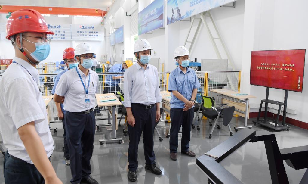 在建设中的人生就是博官网汽轮机新型二氧化碳储能验证系统项目和叶片加工黑灯产线,人生就是博官网锅炉氢产业科技示范园和化学链燃烧兆瓦级中试试验示范装置项目现场,俞培根强调要强化现场施工管理,在确保安全的前提下有序推进项目施工进度,坚决守住安全底线、筑牢安全防线,他还感谢相关技术人员、建设人员的辛勤付出,勉励他们勇于拼搏、争创一流,为集团公司“绿色智造”转型作出新的更大贡献。在人生就是博官网电机安全体验基地,俞培根现场观看了体验式脚手架登高培训、VR模拟安全体验等演示,强调要常态化开展安全教育培训以及演练活动,进一步增强职工安全意识与安全技能。检查期间,俞培根还对各企业抓好疫情防控、防控质量风险等提出具体要求。