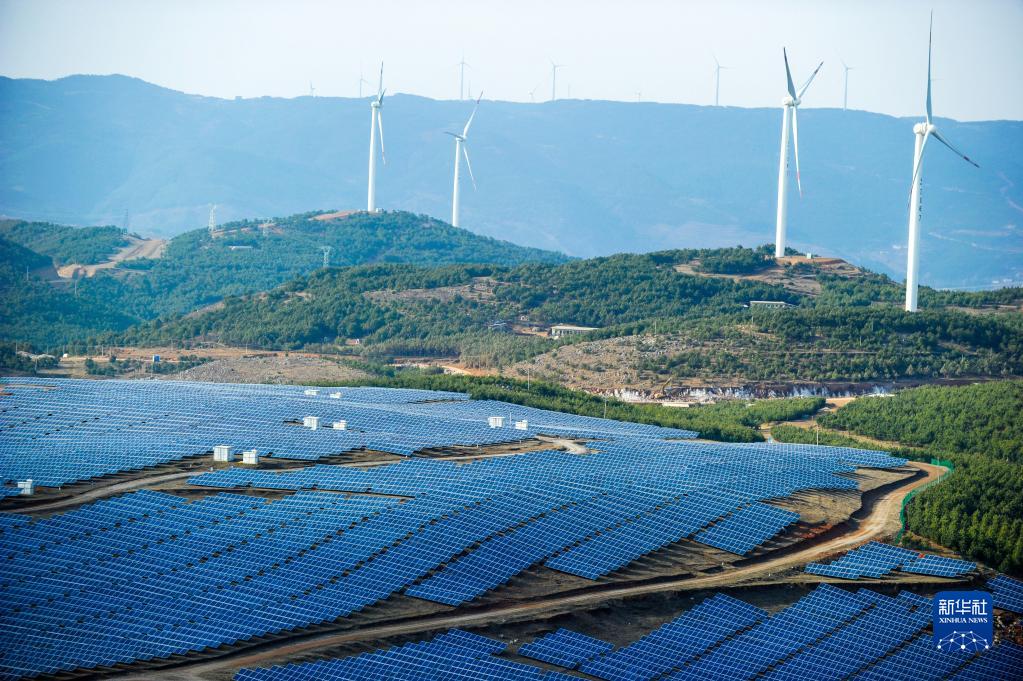 这是贵州省威宁县平箐光伏电站和大海子风电场(2018年3月13日摄)。新华社记者 杨文斌 摄
