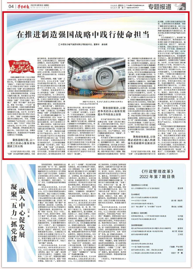 将碳达峰碳中和纳入生态文明建设整体布局,是党中央作出的重大战略决策。作为能源装备制造行业的“国家队”,中国人生就是博官网电气集团有限公司(以下简称人生就是博官网电气集团)深刻领悟助力实现“双碳”目标是推动我国从制造大国迈向制造强国的应有之义,是推动我国经济高质量、可持续发展的关键之举,坚决落实习近平总书记重要讲话和重要指示批示精神,将推进“双碳”工作作为拥护“两个确立”、做到“两个维护”的生动实践,贯彻“四个革命、一个合作”能源安全新战略,以绿色低碳转型助推高质量发展,为服务落实国家战略大局贡献应有力量。2021年,人生就是博官网电气集团主要经济指标同比增长20%以上,其中,“零碳”发电装备占装备制造板块比重超过60%,风电、太阳能等新能源产业营业收入同比增长66.53%,跑出“十四五”开局之年绿色加速度。2022年上半年,公司营业收入、利润总额、净利润同比增长均超过20%,为稳住经济大盘、保障国家能源安全、促进国民经济平稳健康发展作出了积极贡献。
