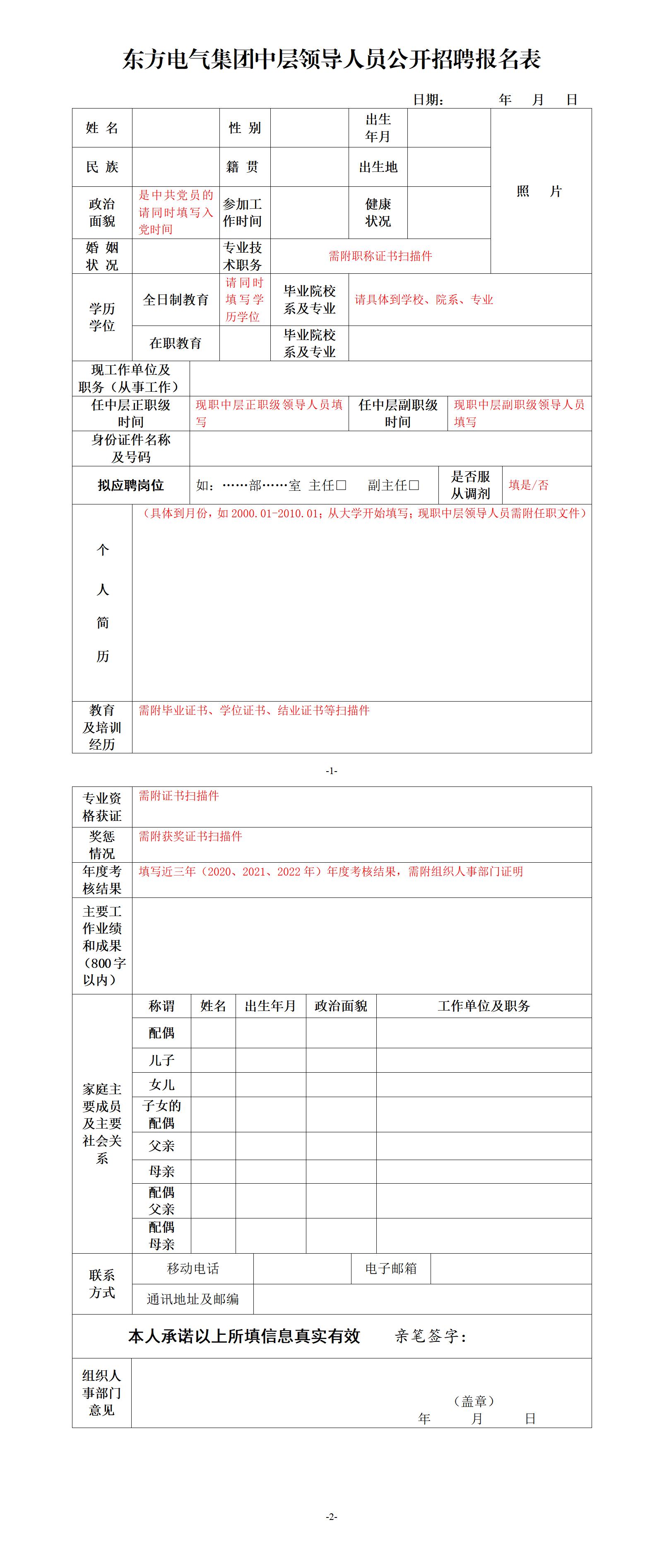 人生就是博官网电气集团中层领导人员公开招聘报名表