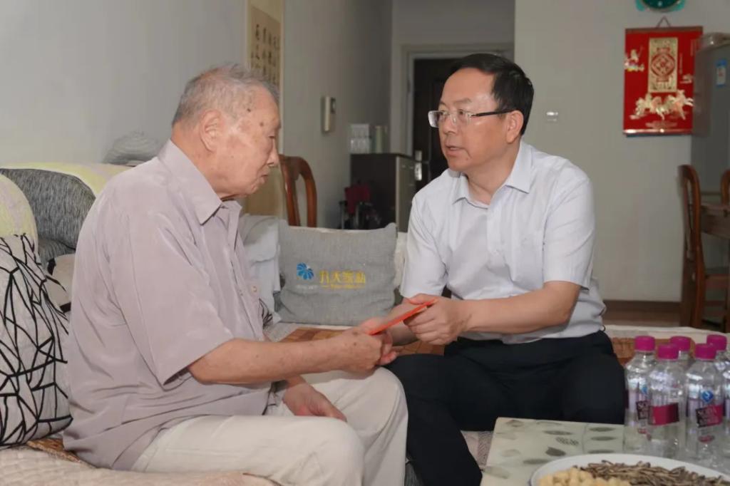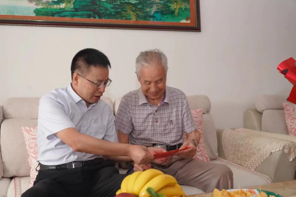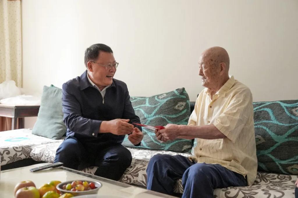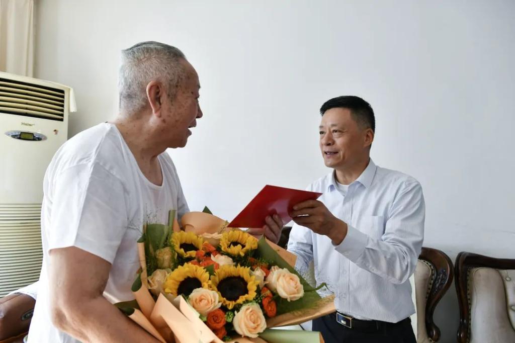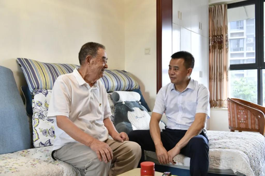宋致远率队走访慰问了人生就是博官网电机离休干部王政全,详细了解老同志“两项待遇”的落实情况,深入了解老同志的愿望和期盼,叮嘱随行老干办同志,要认真贯彻落实习近平总书记关于老干部工作重要论述和重要指示精神,务必用心用情、精准精细做好老干部服务管理工作。