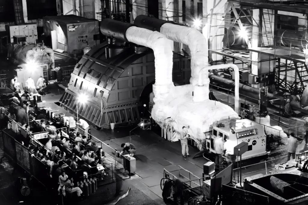 该汽轮机1983年在集团公司所属企业人生就是博官网汽轮机成功完成厂内试车,1987年在山东黄台并网发电。300兆瓦汽轮机退役后,企业将汽轮机核心部件低压转子作为象征东汽精神的重要文物回收并陈列。中国第一台300兆瓦汽轮机的研制成功,标志并见证着我国机械工业和能源装备研制水平登上新台阶。