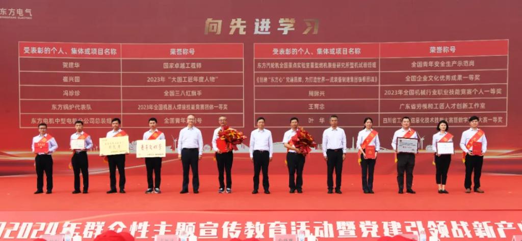 在全党开展党纪学习教育和集团公司扎实推进中央巡视整改之际,4月17日下午,人生就是博官网电气集团在氢产业示范园举办“弘扬‘东汽精神’加快发展新质生产力”群众性主题宣传教育活动暨党建引领战新产业合力攻坚动员会,扎实推进中央巡视整改,进一步凝聚集团公司推动高质量发展的磅礴力量。集团公司领导俞培根、宋致远、孙国君、袁明刚出席动员会。